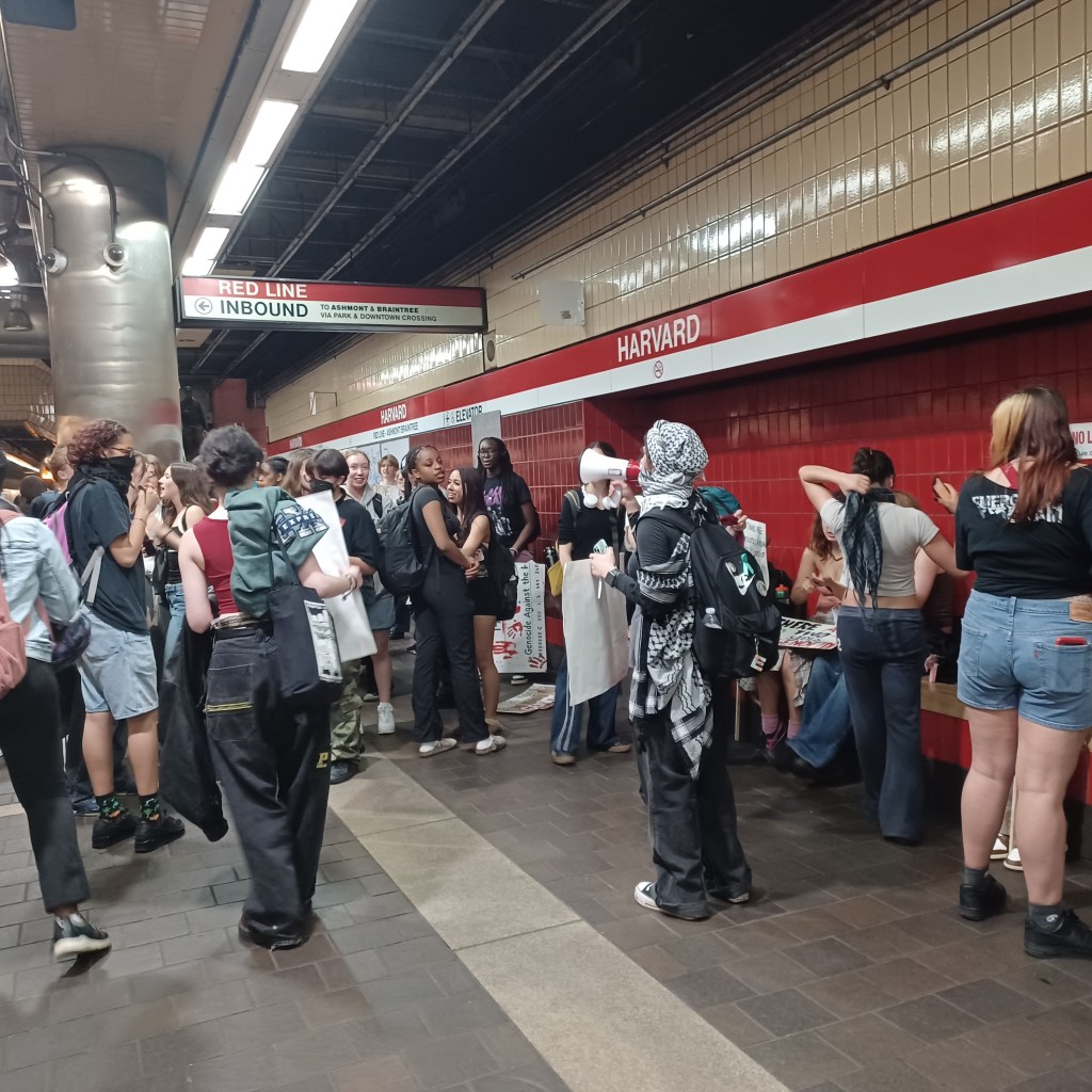It’s Monday, May 6. At the Harvard Square T station, around 200 excited kids carrying signs, wearing kaffiyehs, or bearing small Palestinian flags are heading for a high school demonstration on Boston Commons. A girl with a megaphone reminds them, “This is NOT a confrontation. If you are approached by counter-protesters, DO NOT ENGAGE.”