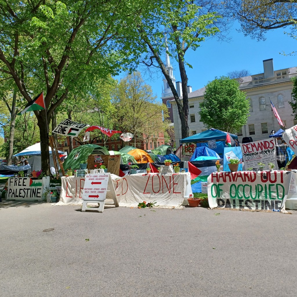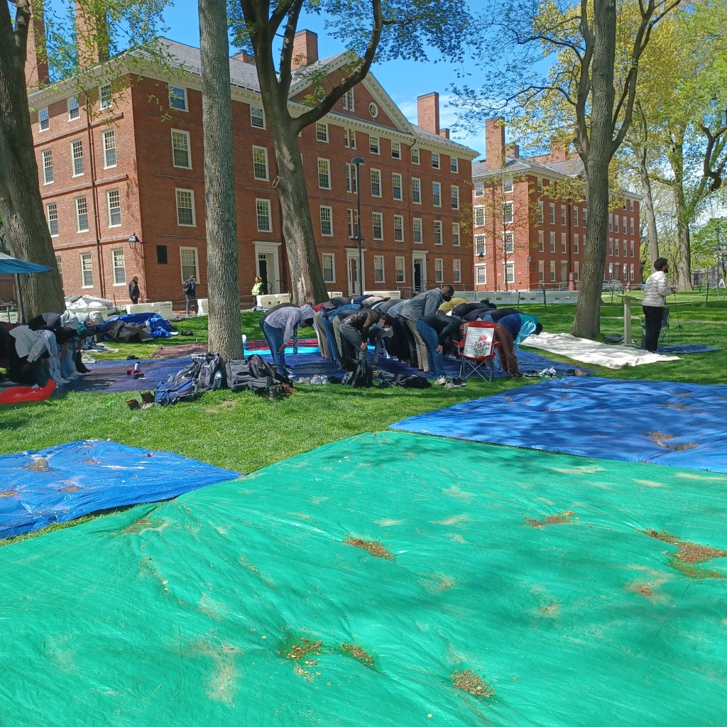 My union friends and a rainbow-haired woman from the Business School think Harvard is treating this protest more harshly than previous encampments. They call it “the Palestine exception.” A student worker wonders if they lose ID access to buildings because of the disciplinary process, will that be grievable through the union.