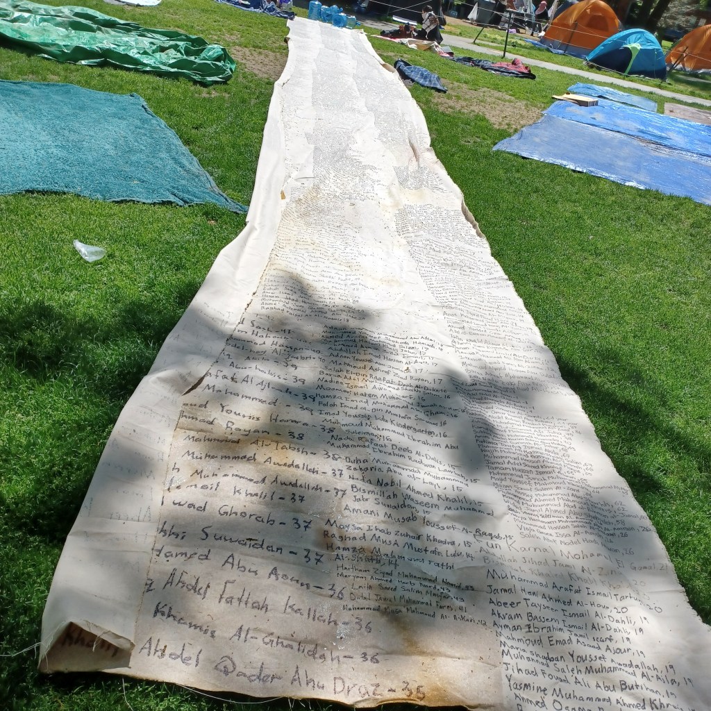 Friday, May 10, is a cool, sunny day. Rising sophomores who lived in the Yard this year are carrying mattresses, couches, and huge cardboard boxes from their dorms. Parents have only 20 minutes to park in the Yard to receive them. The protest tents are not in the way, though so many gates are closed that there is some level of inconvenience for cars coming and going.