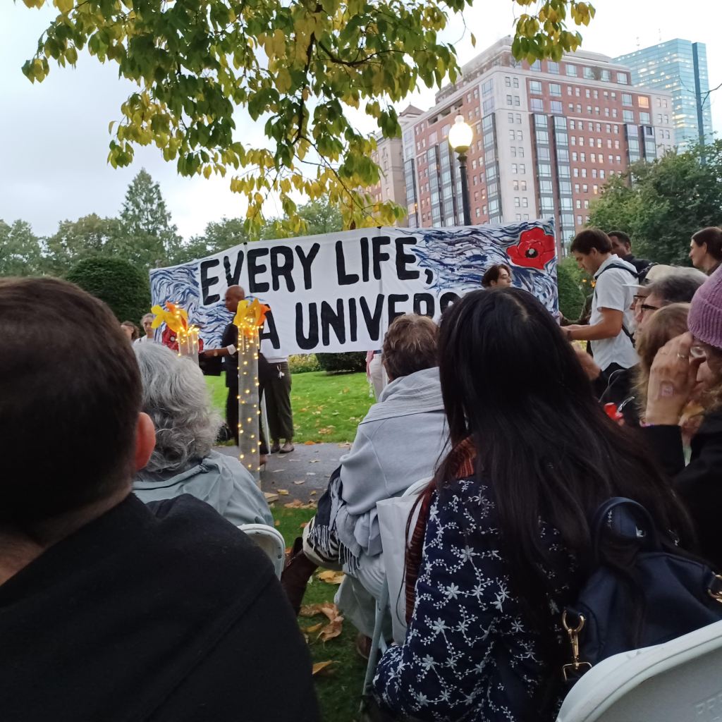 The theme of the main event was “Every life is a universe”. Speakers included Rep. Ayanna Pressley, Rabbi Toba Spitzer, Imam Ahmad Barry, and Rakeea Chesick Gordis. That young woman gave eloquent testimony to losing close friends and family members during the Gaza war, including both Israelis and Palestinians. She spoke of drowning in grief, feeling overwhelmed by waves of it. Again and again, the speakers insisted: Jews cannot be safe if Palestinians are not free.